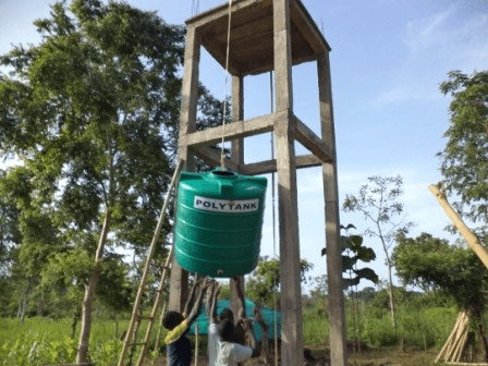 Le projet a consisté à construire une plateforme pour une citerne et une conduite d’eau de la rivière Hounto (à 202m) pour remplir la citerne à l’aide d’une motopompe. La disponibilité de l’eau dans la ferme va non seulement permettre de produire tout au long de l’année mais permettra de remplir le panier des ménagères pendant la saison sèche où les légumes deviennent rares dans la ville.