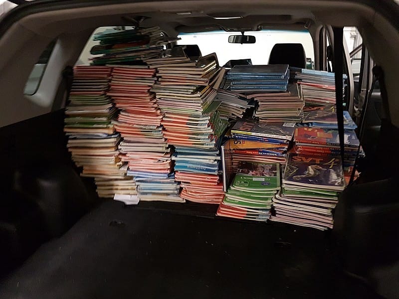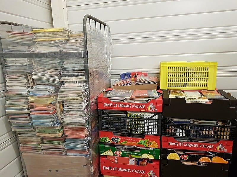 Les manuels scolaires cédés par le collège Gambetta ont été récupérés par Fraternité Alsace-Togo. Ils sont stockés dans un entrepôt provisoire en attendant d’être transféré dans notre dépôt à Hecken, chez notre partenaire Interlogistic.