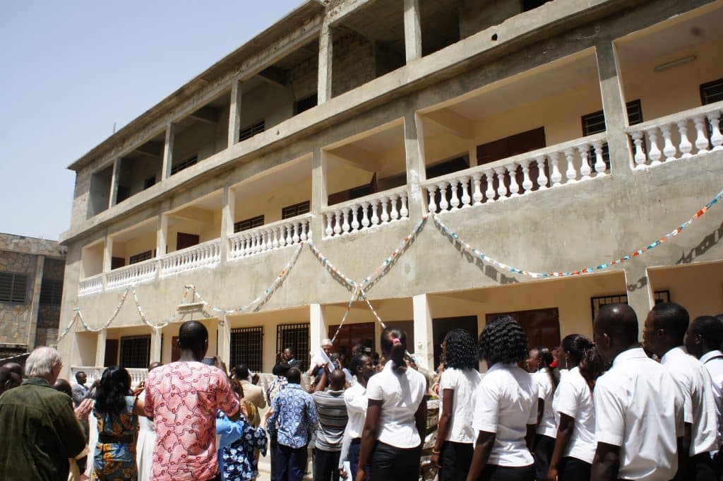 L’I.S.G. fonctionne actuellement dans des locaux loués qui sont peu adaptés à ses fonctions. Le Directeur fondateur de l’I.S.G., Monsieur BAKPESSI, a fait don d’un terrain sur lequel a commencé la construction d’un complexe scolaire pour héberger ces formations. Nous le soutenons dans cet effort. La construction complète demandera encore deux ou trois années mais, dès la fin de la première tranche des travaux, le fonctionnement de l’Institut pourra démarrer et participera ainsi au financement des tranches suivantes. Au terme de la construction, le fonctionnement de l’I.S.G. sera entièrement autofinancé, notamment grâce aux frais de scolarité payés par les étudiants.