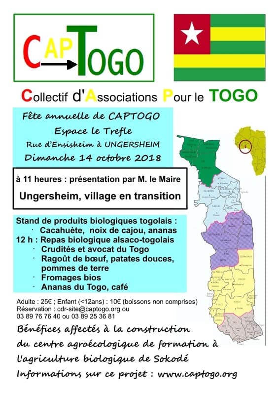 La fête annuelle 2018 de CAPTOGO a lieu à l’espace Trèfle d’Ungersheim le 14 octobre à partir de 11 heures.
