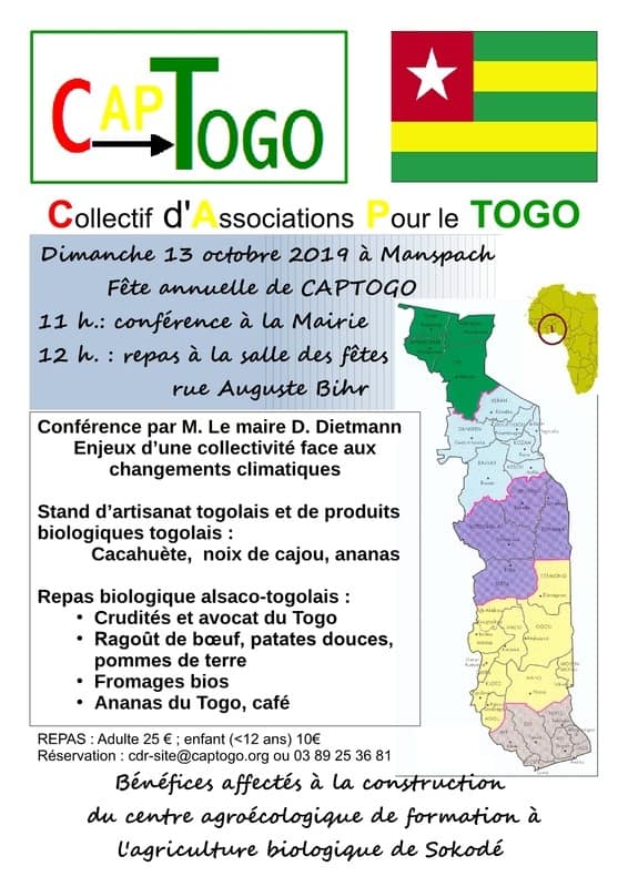 Notre fête annuelle 2019, avec son point d’orgue le repas alsaco-togolais, aura lieu dans la salle des fêtes de Manspach, dimanche 13 octobre à partir de 12 heures.