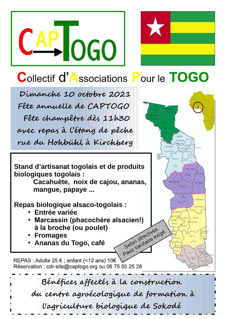 Notre fête annuelle 2021, avec son point d’orgue le repas alsaco-togolais, aura lieu à l’étang de pêche de Kirchberg, dimanche 10 octobre à partir de 11 h 30.